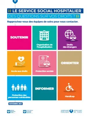 Retrouvez toutes informations dans la plaquette de présentation du service social hospitalier de l'hôpital Hôtel-Dieu.