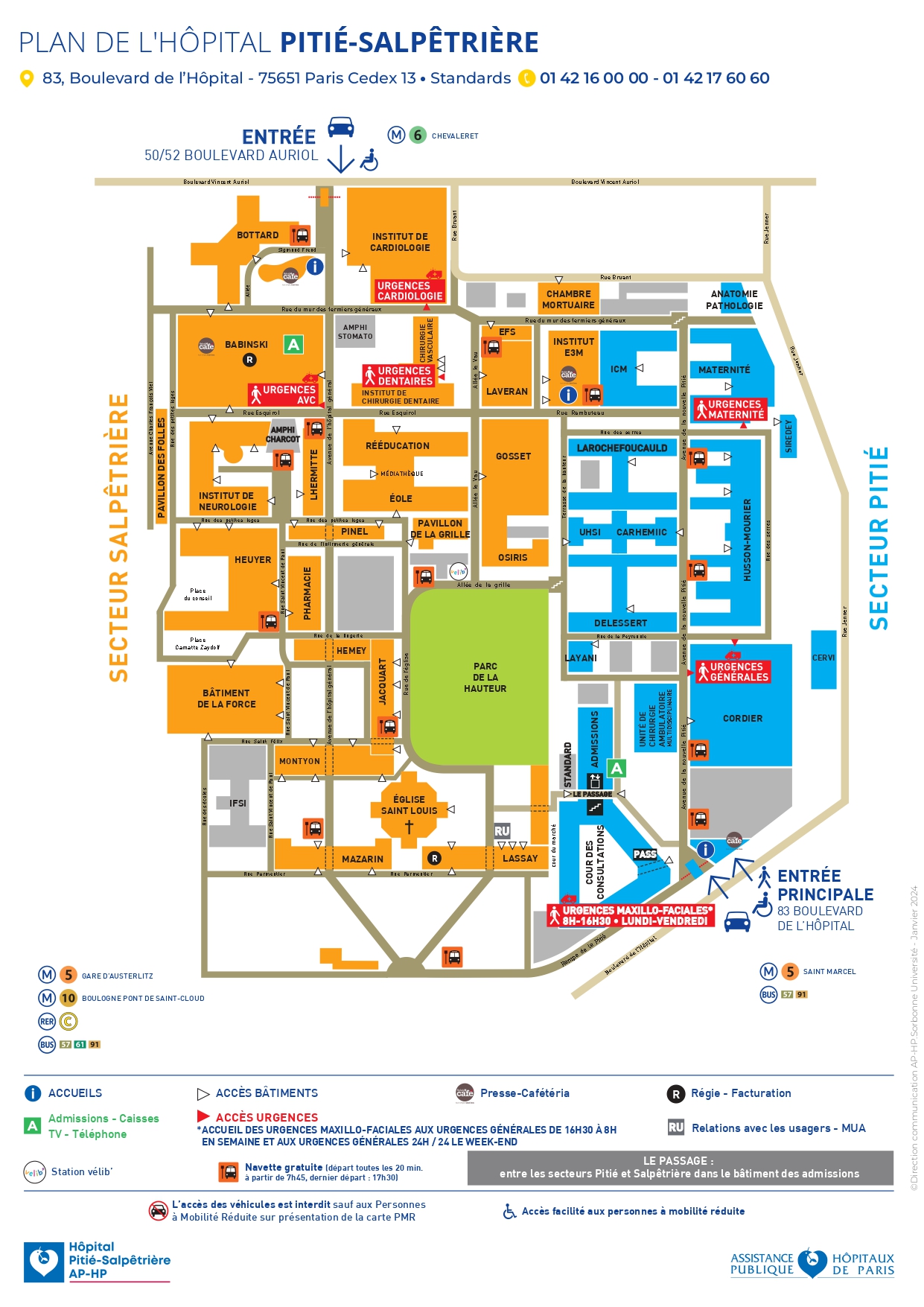 L’accès « Pitié » 83, bd de l’hôpital est ouvert 7j/7 et 24h/24 pour les véhicules autorisés et les piétons.